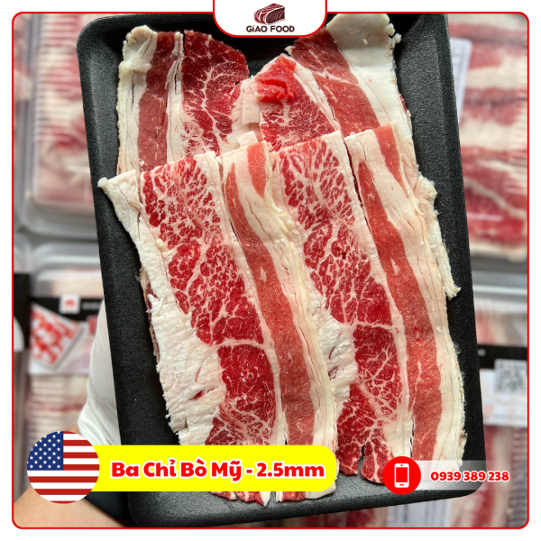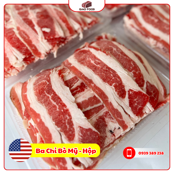 - Ba chỉ bò Mỹ cắt lát sẵn 2.5mm, đóng hộp tiện lợi – phù hợp cho gia đình, quán ăn nhỏ.