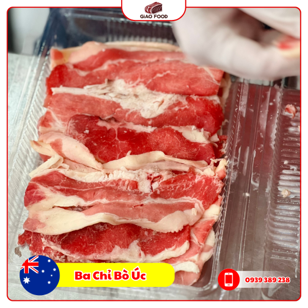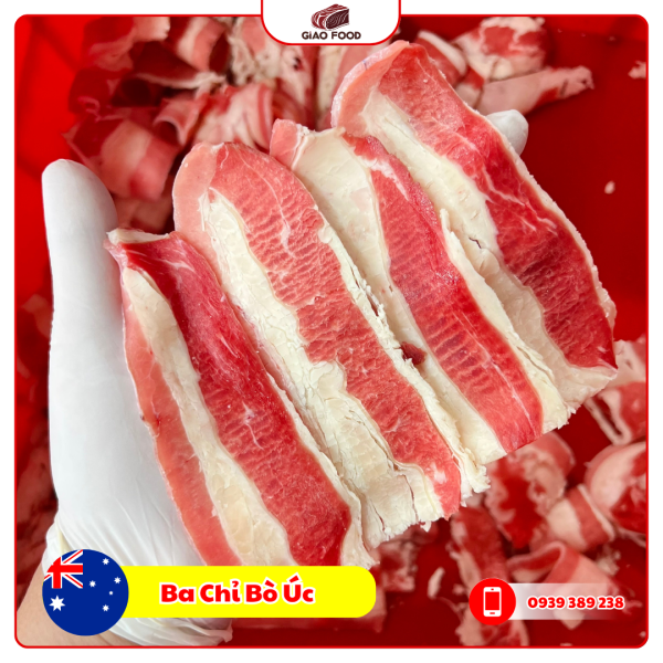 - Ba chỉ bò Úc là phần thịt bụng nổi tiếng với lớp vân mỡ xen kẽ đẹp mắt, tạo độ mềm, béo nhưng không ngấy