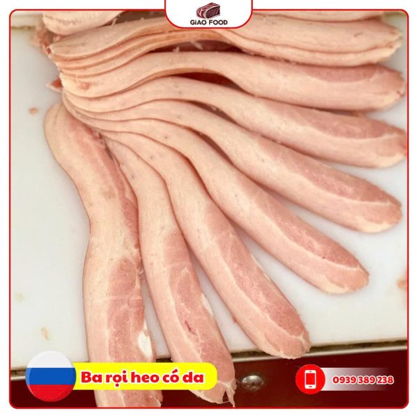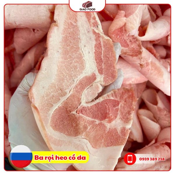 • Ba rọi có da Nga là phần thịt ba rọi giữ nguyên lớp da ngoài, có tỷ lệ mỡ – nạc cân đối.