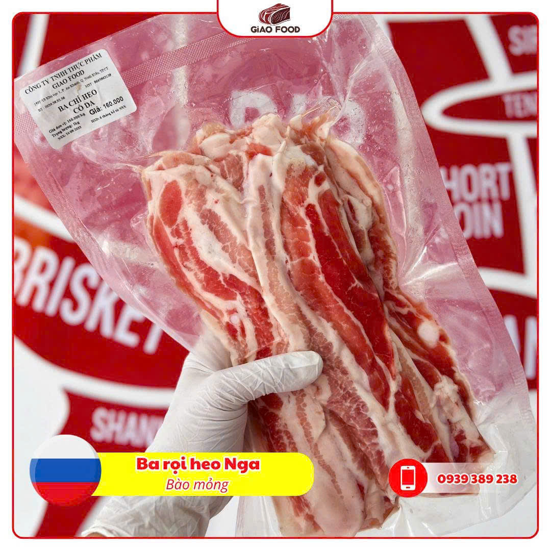 • Ba rọi có da Nga là phần thịt ba rọi giữ nguyên lớp da ngoài, có tỷ lệ mỡ – nạc cân đối.